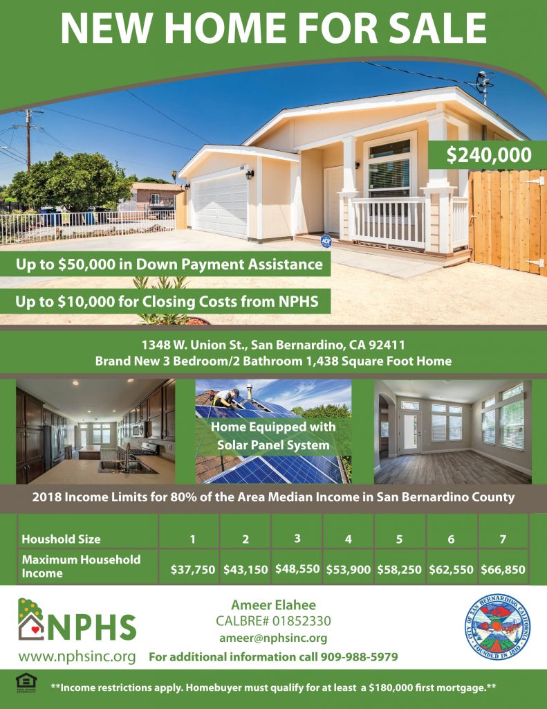 Up to $50,000 in Down Payment Assistance and up to $10,000 for Closing Costs from NPHS. Home is equipped with solar panel system! This single-family 1,438 Sq ft., home is a single story with many desirable features. The home offers three bedrooms, two baths and two car garage. The stunning property consists of new interior and exterior paint, new laminated wood floors, new carpet. The new kitchen consists of new cabinets, new quartz counter tops, new stainless sink and faucet, overhead microwave, dishwasher, refrigerator & stove. The bathroom features new vanity with counter top, new faucet, light and mirror, and a completely new shower. All new light and plumbing fixtures. The new laundry room is conveniently inside the home. The master room has a walk in closet with a master bathroom.